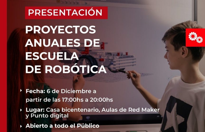 El próximo lunes 6 de diciembre, se realizará la presentación de Proyectos anuales de Robótica, la misma se desarrollará en la sede de la Casa del Bicentenario (Av. José Ingenieros y Larrea) a partir de las 17hs.