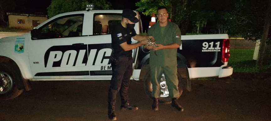 El inusitado hecho se registró alrededor de las 20 horas y se conoció a través del llamado de un vecino a la dependencia local, quién manifestó que el mamífero ingresó al patio de su casa. Entonces los efectivos acudieron al lugar y con sumo cuidado lograron atraparlo.