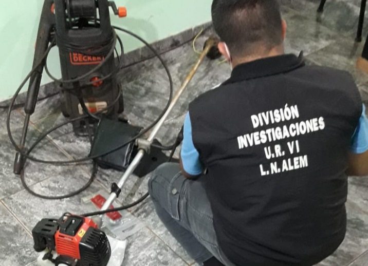 Ayer por la tarde, los agentes de la División Investigaciones de la Unidad Regional VI, secuestraron en un malezal de la Ruta Provincial 4 y en el barrio Szczesny, una desmalezadora, una hidrolavadora y una garrafa de 10 kilogramos que les fueron sustraídos a vecinos de la zona.