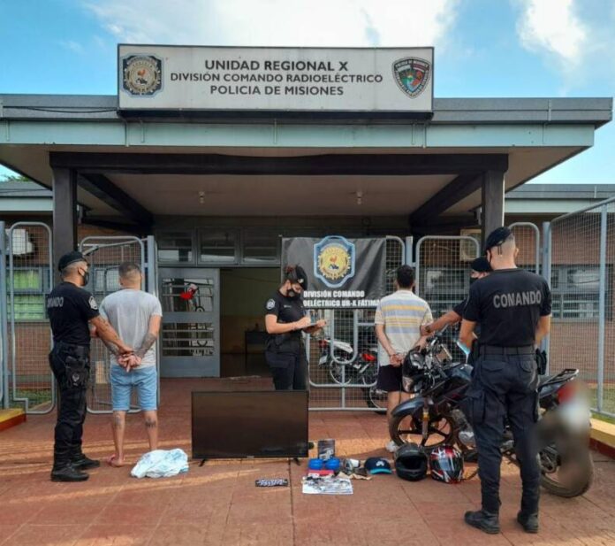 Son dos hombres de 37 y 22 años, quienes terminaron detenidos por los efectivos del Comando Radioeléctrico Fátima. En poder de estos incautaron un gran número de elementos que fueron robados de una vivienda del barrio Santa Elena.