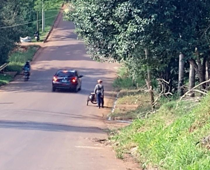 Como ocurre en la mayor parte de Oberá, la gente debe caminar por la calle a riesgos de ser embestidos por los vehículos, dado que no hay veredas.