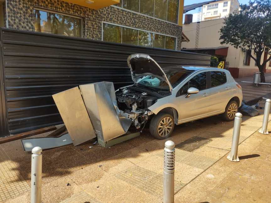 Esta tarde, por causas que se investigan, en el centro Cívico de Oberá, un vehículo Peugeot 308, guiado por un hombre de 30 años, despistó e impactó contra paneles eléctricos, postes y un banco.