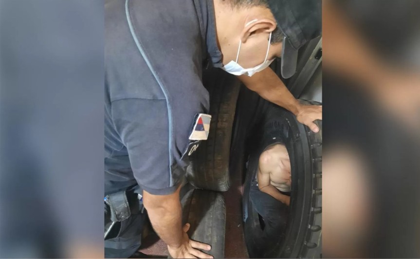 Robó en un taller y se escondió adentro de la rueda de un camión