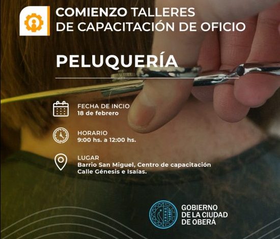 Este viernes 18, se dará inicio al taller de peluquería en el marco del programa municipal «Talleres de oficio» dictado por profesionales del municipio que prestan servicio en el Departamento de Capacitación. Los que cursan dichos talleres, serán certificados por el Centro de Formación Profesional y el Gobierno de la Ciudad Oberá, con la habilitación para ejercer el oficio.