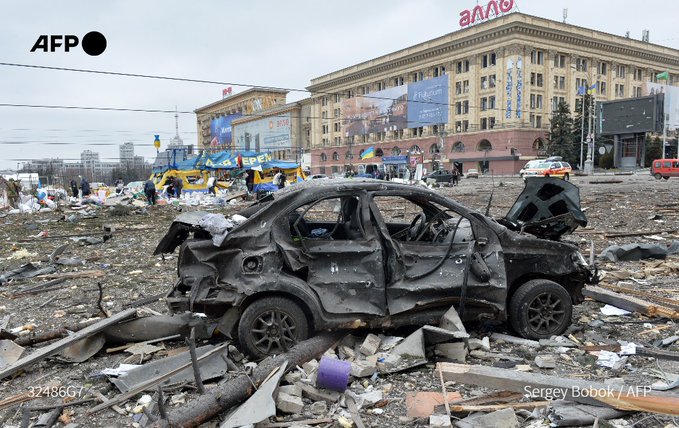 El Ministerio del Interior de Ucrania informó que un ataque aéreo impactó directamente frente a un edificio del gobierno en la segunda ciudad más grande de Ucrania, Kharkiv, dejando al menos 10 fallecidos, según rescatistas. Fuentes de inteligencia estadounidenses han compartido imágenes de un convoy de más 60 kilómetros de tropas rusas acercándose a Kyiv y, según los informes, las fuerzas rusas habían ingresado a la ciudad sureña de Kherson. Ucrania ha acusado a los rusos de usar bombas termobáricas, también conocidas como de vacío.