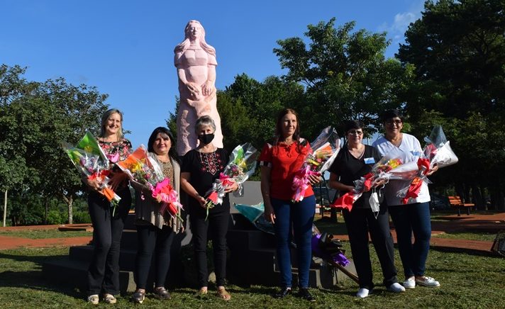 Presidida por el Intendente Germán Burger, acompañado del presidente del Honorable Concejo Deliberante, integrantes del gabinete municipal y vecinas que participaron del acto conmemorativo.