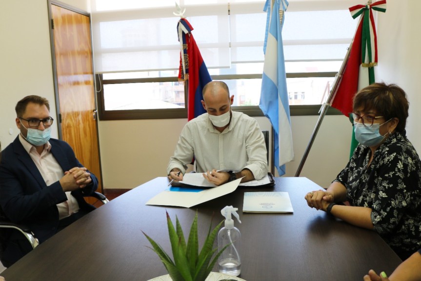 La rúbrica estuvo a cargo del Sr. Intendente, Ab. Pablo Hassan y por parte del Instituto, el Sr. Alexis Sand, acompañó al Intendente la directora de Desarrollo Humano, Betiana Avancini.