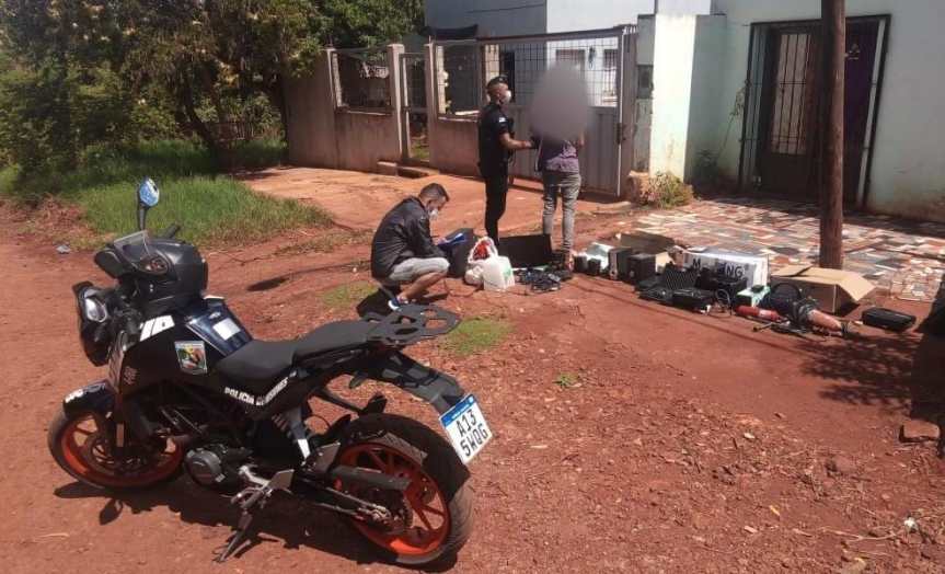 Ayer en horas de la tarde, los integrantes de la división Patrulla Motorizada de la UR-II, detuvieron en el barrio Caballeriza a un joven de 26 años e incautaron diferentes elementos que este ofrecía a la venta, los cuales fueron denunciados como robados desde una escuela y una vivienda de Oberá.