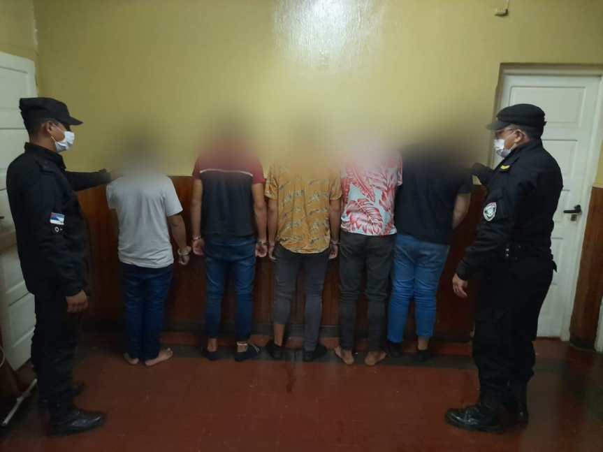 Una vez que conocieron la situación, los agentes se constituyeron al lugar y detuvieron a cuatro hombres entre 19 y 32, quienes ofrecieron resistencia, mediante golpes de puños y patadas, además de amenazar de muerte al personal actuante. Y demoraron a un adolescente de 17 años