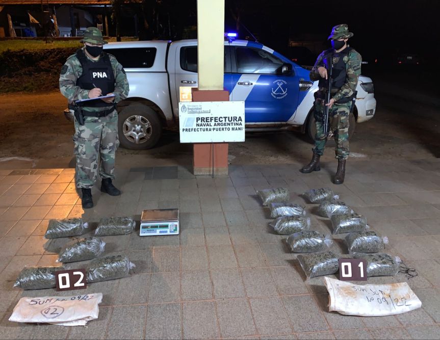 Efectivos de la Prefectura Naval Argentina incautaron marihuana por un valor de más de 1.630.000 pesos en un procedimiento realizado en la localidad de Corpus.