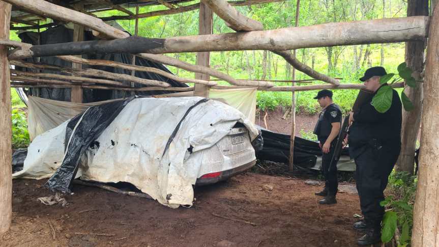 Consecuentemente, los agentes montaron un operativo cerrojo, que culminó cerca de las 14 horas en el paraje Guatambú de Mojón Grande. Allí, siguieron las huellas del coche que llegaron hasta un galpón, en donde el rodado estaba abandonado y tapado con unas lonas.