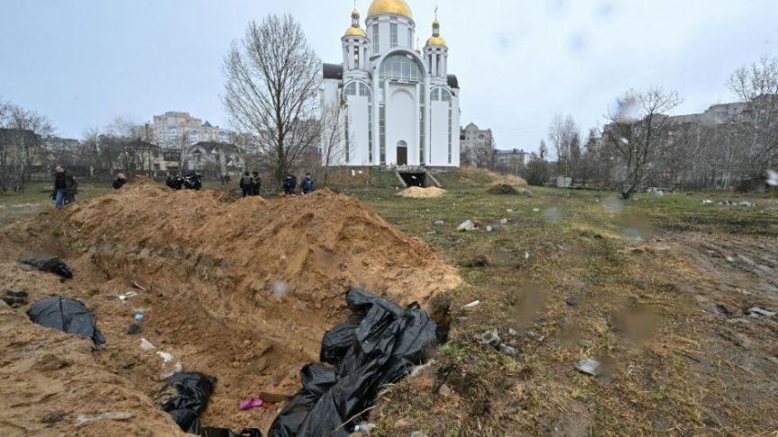 Tras la retirada de tropas rusas de ese suburbio de Kiev, Ucrania denunció haber hallado fosas comunes y civiles asesinados tirados en las calles, algunos con las manos atadas detrás de la espalda. Acusó a tropas rusas por la masacre. Rusia, en cambio, afirma que se trata de un montaje fabricado por Kiev, y asegura que sus tropas no tuvieron ningún involucramiento en la presunta masacre.