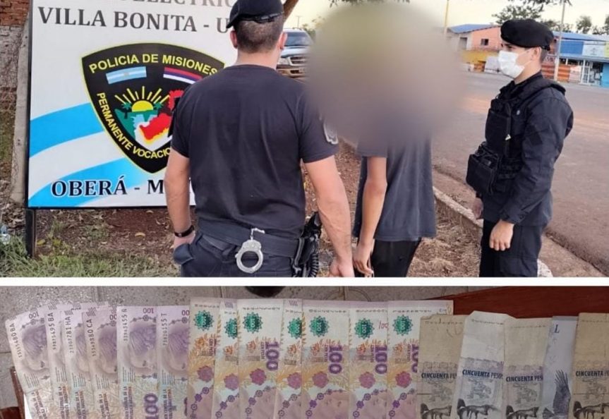 Ayer efectivos de la División Comando de Villa Bonita, recuperaron 5 mil pesos en efectivos robados de una vivienda del barrio Evita de esa localidad, y demoraron a un adolescente de 16 años, sindicado como autor del hecho.