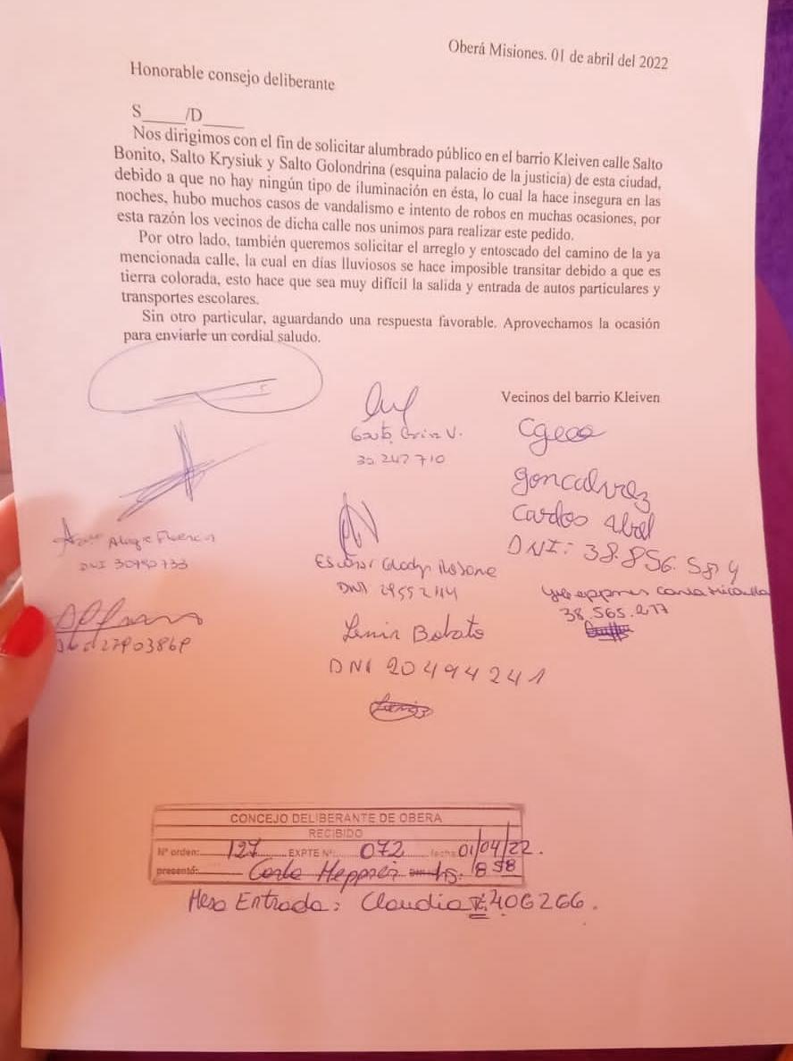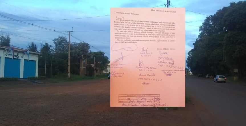 Esta semana los vecinos presentaron una nota al Concejo Deliberante y la municipalidad solicitando alumbrado público urgente en dicho barrio dado el alto índice de inseguridad, particularmente en la zona del Palacio de Justicia cuyo edificio fue inaugurado hace dos años y medio pero aún no funciona. Además reclaman al municipio la reparación de las calles terradas que se vuelven intransitables en días de lluvia.