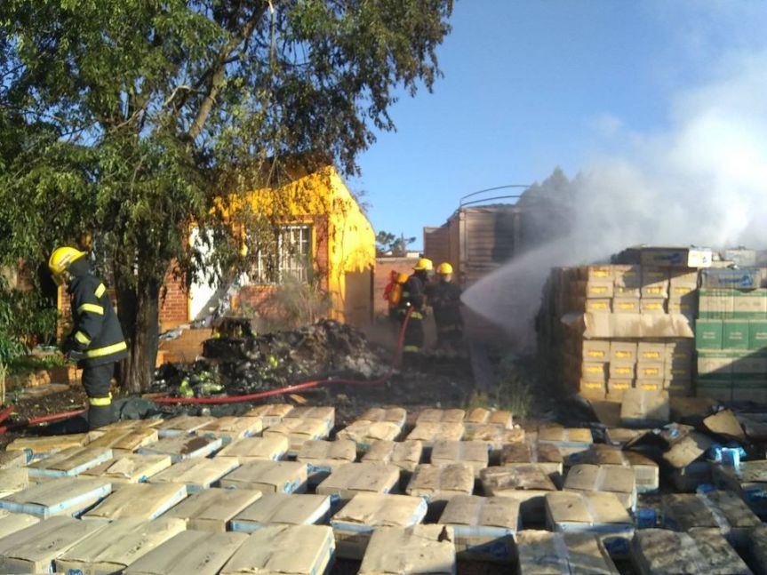 Llegando al lugar los bomberos voluntarios locales encontraron con una carga de mercadería en el patio de una vivienda. Se trabajó junto a la división Bomberos de la policía para controlar y extinguir las llamas.
