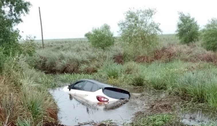 Un auto quedó sumergido en el agua, en inmediaciones de la ruta provincial Nº 5, a kilómetros del empalme con ruta nacional Nº 118, luego de que su conductor perdiera el control del vehículo.