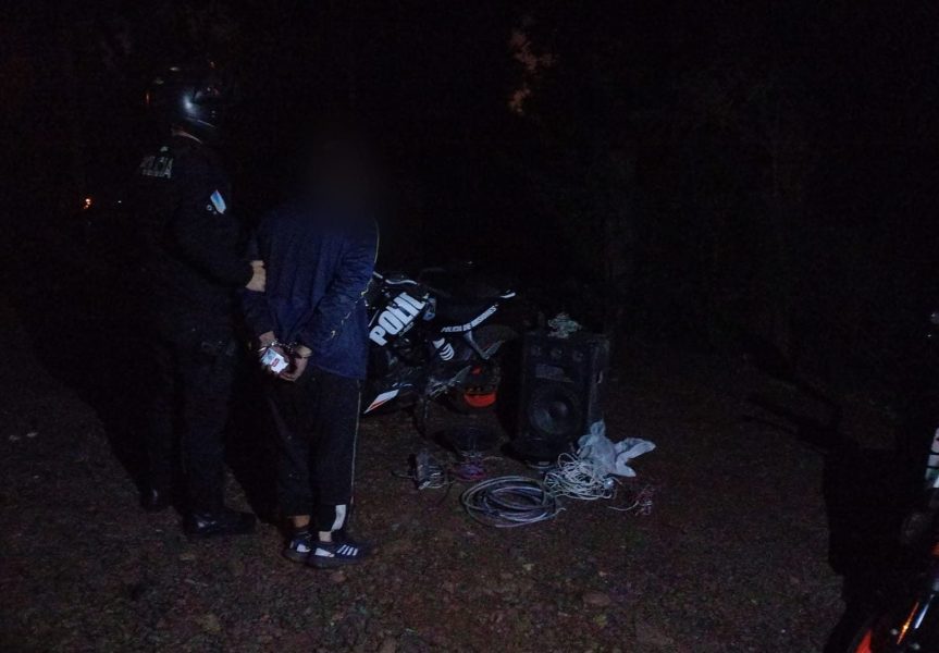 Anoche, los efectivos de la Patrulla Motorizada detuvieron en calle Tierra del Fuego, a un sujeto de 25 años y recuperaron una caja de sonido con tres parlante, una corneta, tres twister, un carburador de auto, un cable de alto voltaje, un alargue, varios metros de cable y un porta foco.