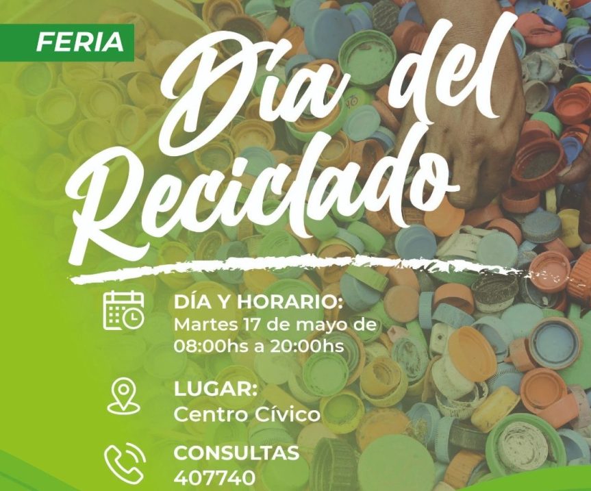 El martes 17 de mayo en alusión al día mundial del reciclado los emprendedores pertenecientes a Oberá Emprende que realizan sus productos a partir de reciclados, tendrán a disposición sus productos desde las 8hs. hasta las 20hs. en el Centro Cívico de la ciudad.