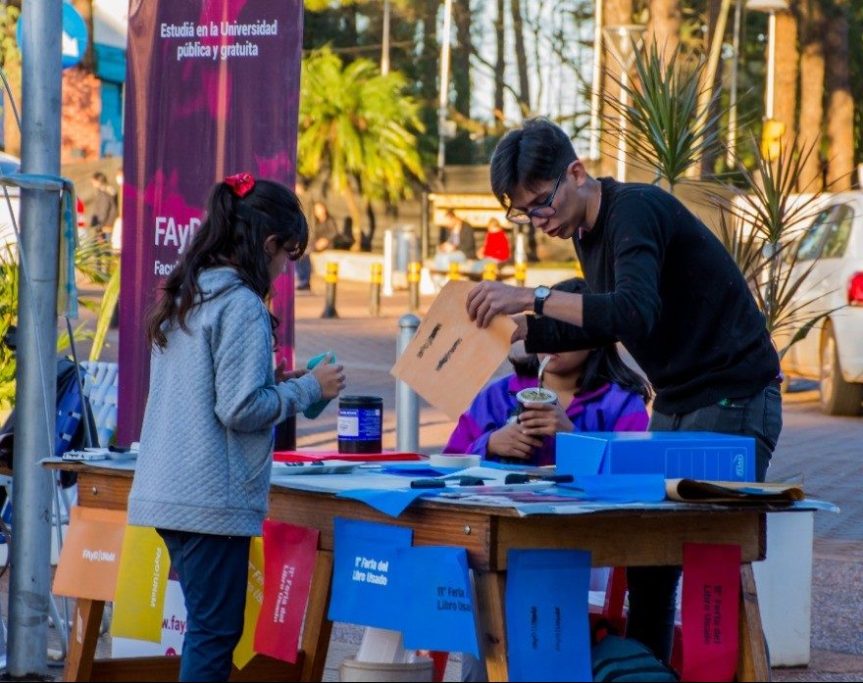 En la jornada los chicos disfrutaron las actividades de estampados en el sector de la Facultad de Artes, y en general se realizaron intercambios y ventas de libros, jornada que fue provechosa para todos los participantes, que además estuvieron durante la jornada acompañados por las melodías de Federico Esteban.