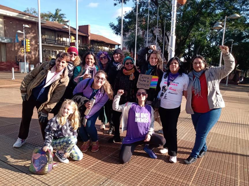 En Oberá, unas 30 mujeres se concentraron a las 15 horas en el centro cívico contando con referentes de la CTA, entre ellas la docente Liliana Müller que encabezó el acto; como así también la agrupación Tierra Techo y Trabajo y el Movimiento de Mujeres Nina Somariva.