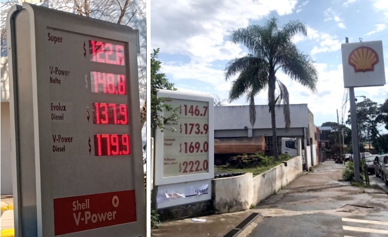 Pero en el caso de Shell, en Puerto Iguazú la V-Power alcanzó $222 por litro y $169 la fórmula diésel. En Jardín América el mismo combustible se vente a $214,90 y $183,50 respectivamente.
