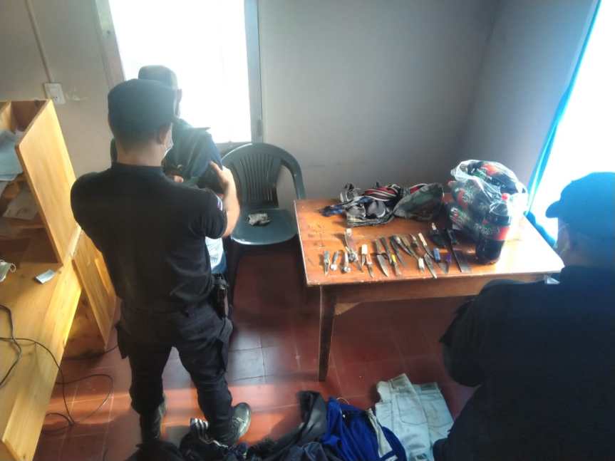 Asimismo, incautaron 18 cuchillos de distintas características que el señalado tenía oculto entre 9 pantalones que llevaba puesto.