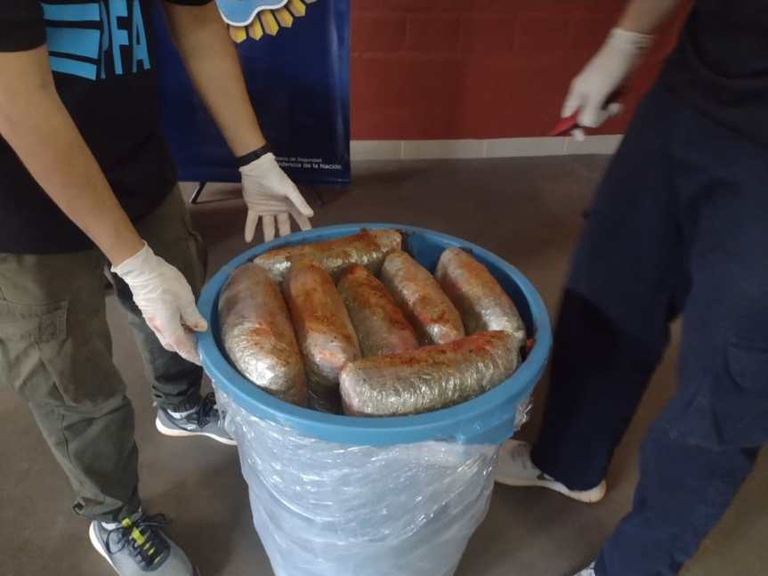 Los investigadores determinaron que la encomienda contenía 35 paquetes cerrados al vacío y embebidos en grasas y condimentos, modalidad delictiva a fin de “disfrazar” los aromas de la marihuana para no ser detectados. El peso de la droga superó los 40 kg cuyo valor aproximado en el mercado negro es de $ 5.000.000