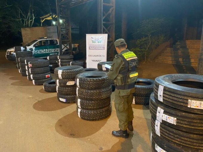 Los efectivos de Gendarmería del Escuadrón 13 “Iguazú” mientras efectuaban controles sobre el kilómetro 1.606 de la ruta nacional N° 12, inspeccionaron un camión con su semirremolque y secuestraron 104 neumáticos.