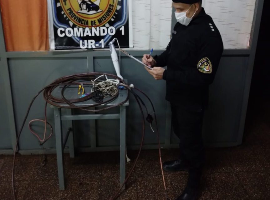 El primer hecho se concretó luego de que los integrantes del Comando Centro de Posadas, fueran alertados por un hombre que informó que dos sujetos sacaban los cables de un poste ubicado sobre la calle Máximo Paz. Una vez en el lugar, dieron con los señalados y los arrestaron, además secuestraron un rollo de cable y una pinza.