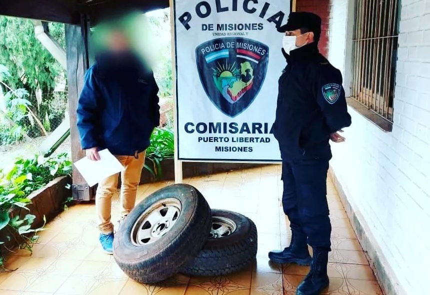 En Puerto Esperanza, la Policía fue alertada sobre un robo de dos ruedas de una camioneta estacionado sobre la calle Hipólito Yrigoyen, a raíz de la denuncia de un hombre de 41 años. Una vez en ese vecindario, se entrevistaron con otro hombre, quien manifestó haber adquirido los neumáticos por parte de un desconocido y se los entregó.