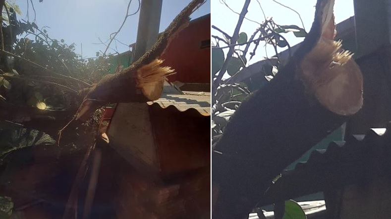 «La amada y querida municipalidad de nuestra ciudad tumbó un pedazo de árbol en mi techo del quincho, es viernes, no hay atención al público (según tengo entendido) de parte de la municipalidad, y la verdad me dejaron daños en mi propiedad. Más aún, todo el peligro que representa que una rama enorme de árbol caiga en un patio de una casa. Incluso se llegó a gritarle y silvarle a uno de la municipalidad que, según parece, se había olvidado algo cerca de la zona y volvió a buscarlo», pero «en ningún momento se giro ni nos miró, se fue así como si nada. Pareciera que hacen las cagadas y encima, le queres chiflar para hablar cuando los ves y no bola», manifestó Alejandro Werner.