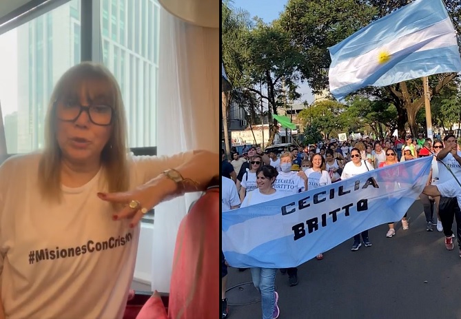 Aunque no estuvo presente en Posadas durante la marcha del sábado en apoyo a Cristina Kirchner, un grupo de militantes exhibió remeras y banderas con el nombre de Cecilia Britto.