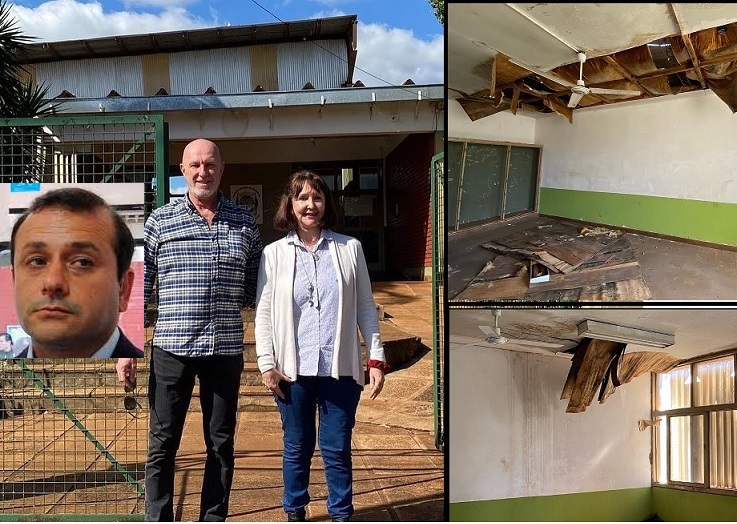 «Las refacciones aún no se han realizado, desde el mes de marzo hay 6 aulas clausuradas. El techo ha cedido y es muy peligroso por la conexión eléctrica en esos sectores de la institución. Hablamos con su directora la Sra Graciela Sowinski quien nos manifestó su preocupación por la falta de respuesta a sus reiterados reclamos», agregó.