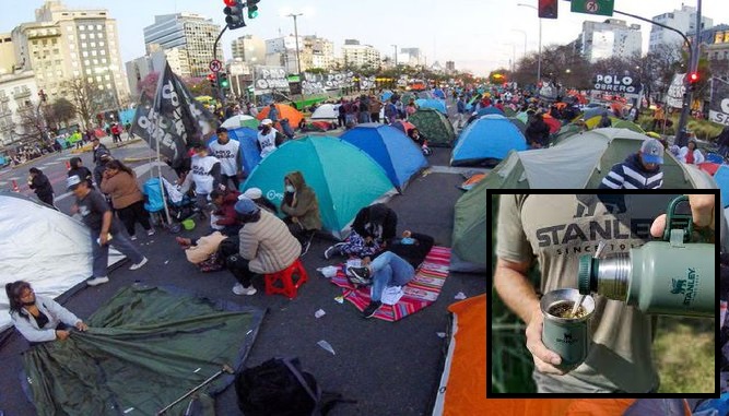 “Está bien que somos pobres, pero también tenemos derecho de tener una buena carpa, un termo Stanley, así como los políticos tienen derecho de tener todas esas cosas”, se quejó Lorena, una de las personas que estaba saliendo en vivo para el programa de Eduardo Feinmann en Radio Mitre.