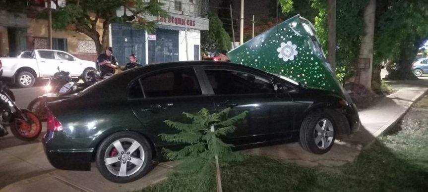Conductor ebrio chocó contra un auto y una parada de colectivos