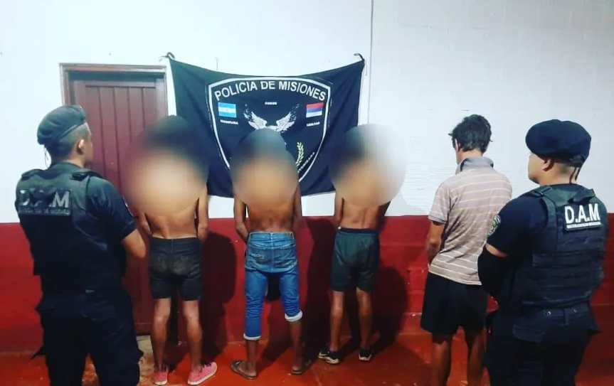 En el sitio, los efectivos detuvieron a tres hombres indicados por el denunciante y posteriormente a otro sospechoso que se hallaba escondido en el interior de una propiedad privada lindante, además de secuestrarle un cuchillo tipo tramontina, con el cual amenazó a los policías.