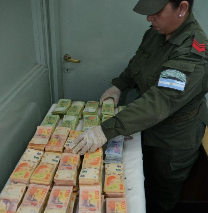 Los funcionarios procedieron a contabilizar el total de los elementos detectados, arrojando un total de 7.181.000 pesos argentinos.