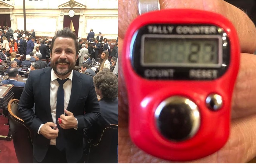 El objeto en cuestión es un Tally Counter o contador-registrador, es decir un dispositivo que puede ser mecánico o digital, empleado para contar “de manera incremental”. Suele usarse en los ingresos masivos de personas a estadios o boliches, o para contar ganado, entre otros usos, como el que pretendió darle Tetaz durante el discurso del Presidente.