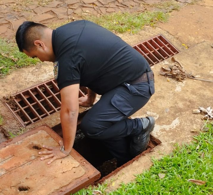 Por ello, tras abrir la regilla, uno de los efectivos ingresó a la boca de tormenta y con la ayuda de una soga, sacaron del sitio al can y lo trasladaron hasta la seccional, donde fue atendido por el veterinario policial.