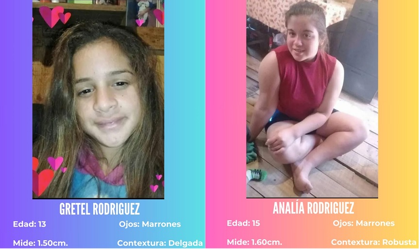 Desde la Unidad Regional II, se solicita colaboración para dar con la ubicación y paradero de las menores Analía Rodríguez de 15 años y Gretel Rodríguez de 13 años, ambas hermanas, quienes estaban viviendo junto a su madre en el barrio Gunther de esta ciudad. Las mismas estarían en compañía de otros dos menores, Marcos Dos Santos y Jorge Dos Santos.