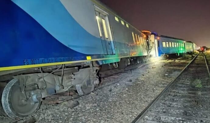 Un tren de larga distancia con destino a Bahía Blanca descarriló en la ciudad de Olavarría con casi 250 pasajeros a bordo. El hecho sucedió este martes cerca de la medianoche y ninguna persona resultó herida.
