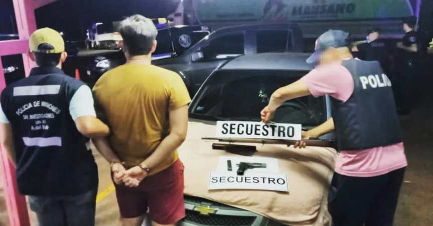 Una vez allí, un automóvil Chevrolet Corsa arribó al lugar y del mismo descendió el presunto implicado junto una joven de 21 años. Los investigadores realizaron las detenciones e incautaron una pistola Browning 9mm, un arma larga tipo fusil cal. 15mm-5,5mm y el vehículo en el cual se movilizaban, siendo trasladados a la comisaría jurisdiccional.