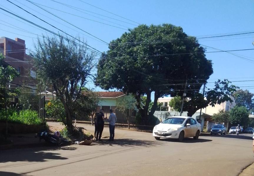 Hoy se repitió la postal con una moto de 110 cm y un auto marca Peugeot 407, como protagonistas. La municipalidad de Oberá sigue sin hacer nada al respecto, dejando que las cosas sucedan.