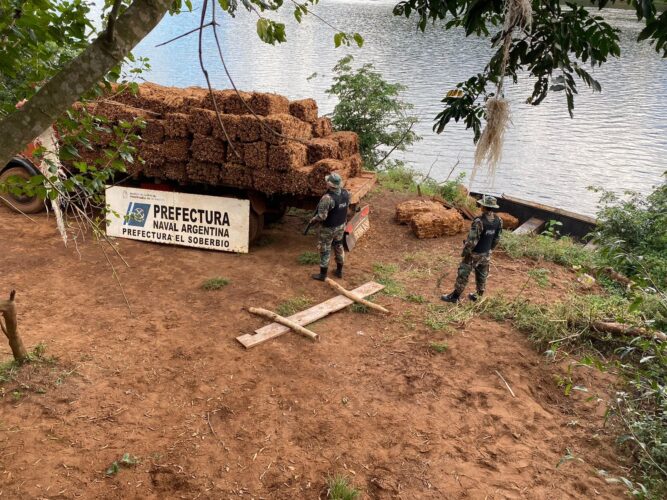 El hecho ocurrió cuando una patrulla de la Fuerza, que realizaba tareas de vigilancia y control, detectó, a la altura del kilómetro 1.186 del río Uruguay, que se estaban cargando bultos desde un camión hacia dos embarcaciones acoderadas entre sí, sobre la costa.