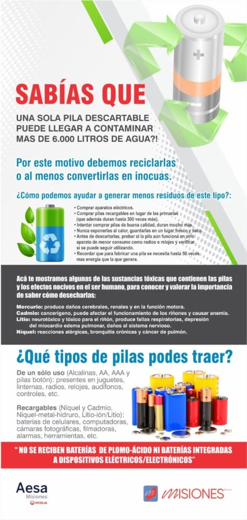 Siguiendo las premisas de la mencionada legislación, la operación del Sistema Provincial concesionado a la empresa AESA Misiones S.A., comenzará a funcionar a partir de un Centro de Almacenamiento Primario Municipal, desde donde se retirarán las pilas y baterías, las cuales serán trasladadas al Centro Ambiental del Relleno Sanitario Sur, que funciona en la localidad de Fachinal,