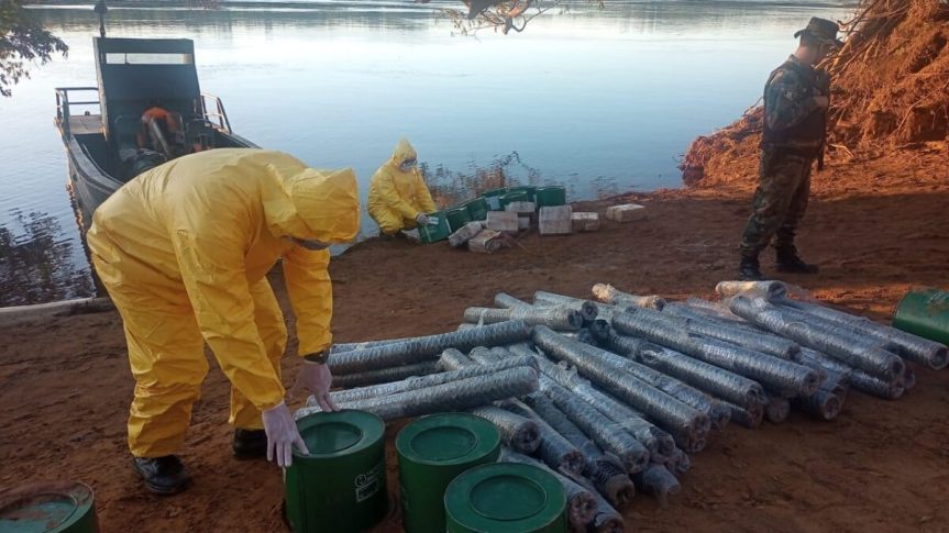 El operativo fue resultado de un patrullaje realizado en la zona de Puerto Topo, a la altura del kilómetro 1736 del río Paraná, donde el personal localizó los bultos y, al verificarlos, constató que carecían de aval aduanero.