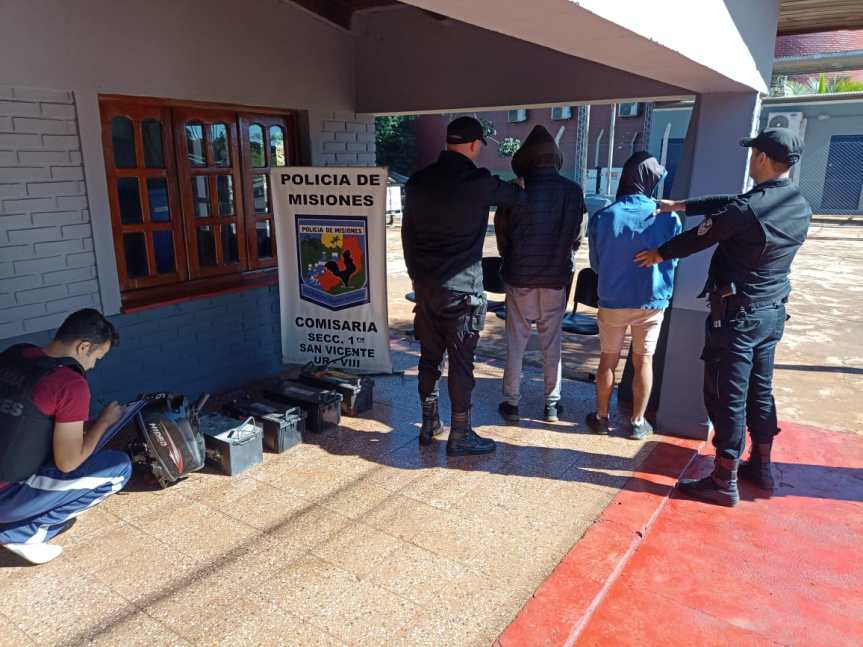 El padre entregó voluntariamente los elementos secuestrados y los jóvenes quedaron detenidos por disposición del Juzgado de Instrucción Nº Tres de San Vicente. Las baterías serán devueltas a sus dueños y se investigará el origen del motor de lancha.