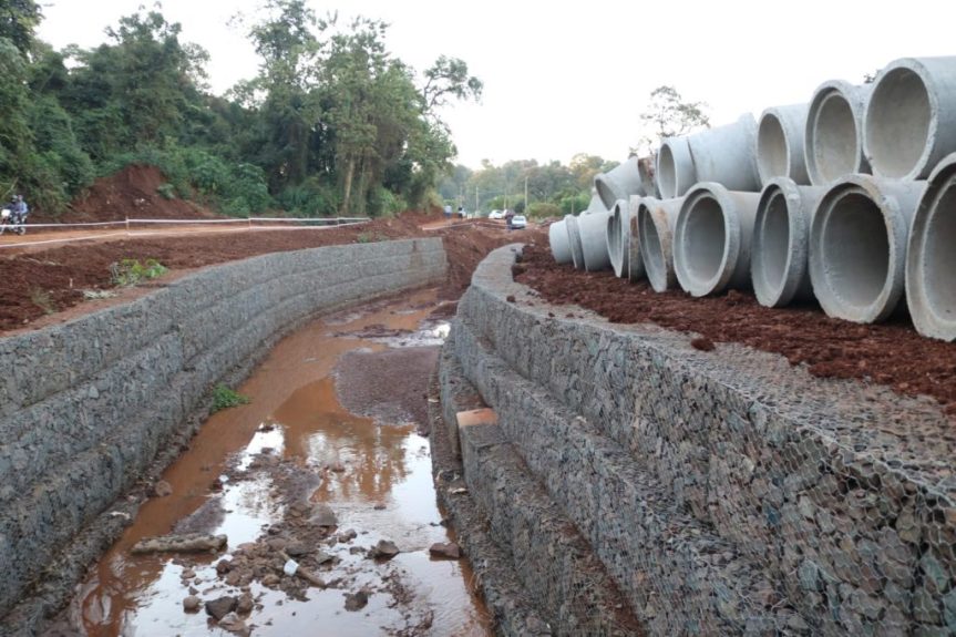 El recorrido incluyó la visita a la construcción de un puente sobre la calle Mitre y Malvinas (Villa Blanquita), esto se encuentra dentro del Proyecto Saneamiento del Arroyo Mbotaby, incluirán en las obras de infraestructura gaviones, voladura de piedra y desagües.