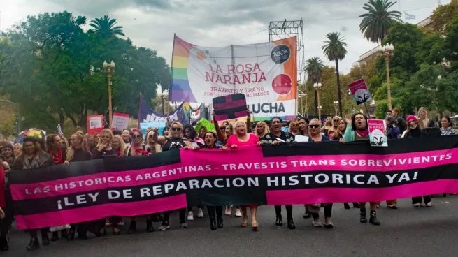 En ese marco, este miércoles miles de personas se manifestaron desde Plaza de Mayo hasta el Congreso en la primera marcha plurinacional bajo el reclamo de una «Ley de Reparación Histórica para las travesti-trans sobrevivientes». La demanda ingresó como proyecto el mismo día a la comisión de Mujeres y Diversidad de la Cámara de Diputados para su debate, impulsada por la diputada Mónica Macha (Frente de Todos). El objetivo de la comunidad trans y travesti es exigir una reparación -representada por un ingreso económico- por los años de persecución sistemática que ha padecido el colectivo por las fuerzas de seguridad, tanto en dictadura como en democracia. El argumento apunta a que, además de ser víctimas de violencia por parte de las autoridades policiales, el colectivo LGBTQ+ tiene mayores dificultades para ingresar al mercado laboral formal por los estigmas que existen sobre las disidencias en la identidad de género.