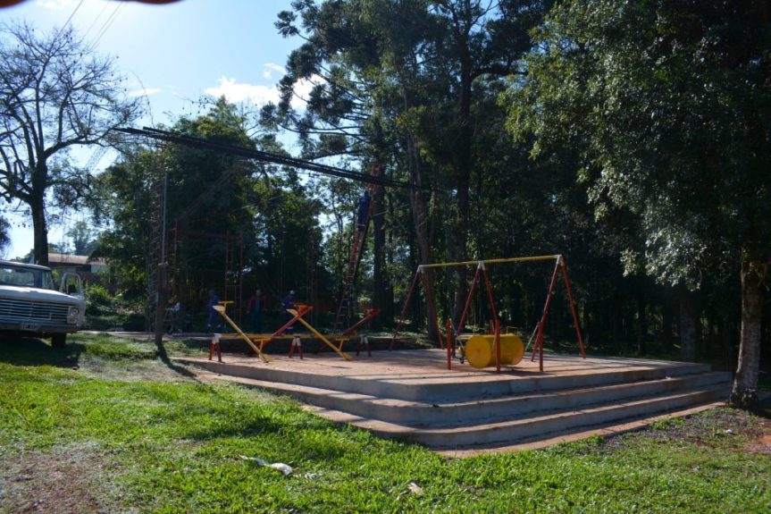 Construcción de plateas, instalación de juegos infantiles (subibajas, hamacas y chancha), colocación de techo para SUM, son algunos de los trabajos que se están llevando a cabo en el Barrio Ecológico.